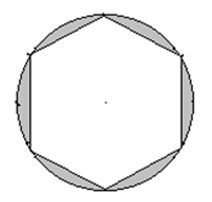 Area of shaded region = area of circle – area of hexagon = 314 – 259.5 = 54.5cm2. .