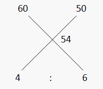 - The ratio appearing will stand for the price below which it is visible, i.e. in this example the ratio of 4: 6 is for sugar worth Rs. 60 and Rs. 50 respectively.