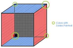 Example 2: In the above example, how many cubes will have three faces painted?