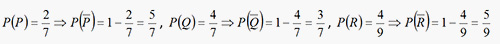 Example 8: A problem is given to three persons P, Q, R whose respective chances of solving it are 2/7, 4/7, 4/9 respectively. What is the probability that the problem is solved?
