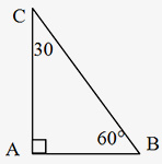 (v) 30°- 60° - 90° Triangle: In a 30°- 60° - 90° triangle, the lengths of the three sides of that triangle are in the ratio 1: &redic;3 : 2. For example, in ∆ABC, if AC = 3, then AB = 3&redic;3 and BC = 6. To summarize, the below mentioned formulae can be applied to calculate the other two sides of a 30°- 60°-90° triangle, when one of the three sides is given.