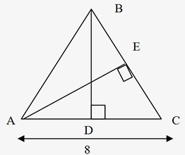 The triangle area is also equal to (AE × BC) / 2. If DABC above is isosceles and AB = BC, then altitude BD bisects the base; that is, AD = DC = 4. Similarly, any altitude of an equilateral triangle bisects the side to which it is drawn.